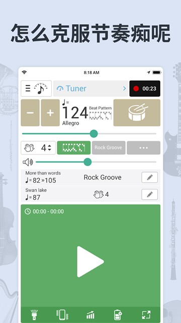 4、节拍器设定:要是使用节拍器功能,进入设定界面,对节拍速度、音量大小等参数进行调整,接着点击开始按钮来启动节拍器。