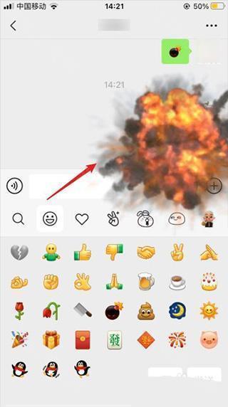 3、能够给朋友发送炸弹表情,此表情发送后会呈现出爆炸效果。
