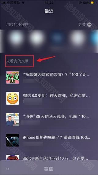 4、通过下拉菜单,能够快速查看尚未阅读完的文章。
