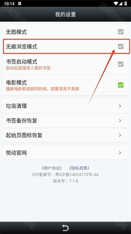 3、轻点设置,于设置页面中,还能够开启无痕浏览功能。