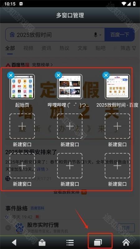 4、点击下方的窗口功能,就能新建多个窗口,让浏览变得更为便捷。