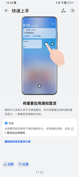 4、点击“快速上手”,系统将一步步详细讲解手机各类消息通知的显示设置,让您一键即可查看想看的信息。