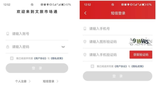 移动端的登录方式主要有两种,分别是账号密码登录以及手机验证码登录,具体可参考下图。