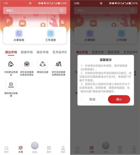 经营主体借助应用程序,向演出市场、旅游市场、娱乐市场、艺术品市场以及上网服务网络文化等多个领域进行提交。