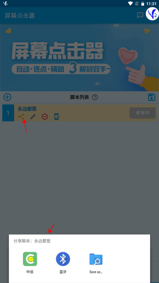 (2)在脚本列表界面,点击分享按钮,即可分享对应的脚本。