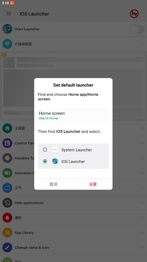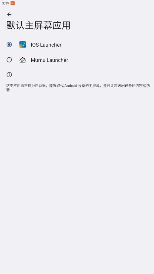 4. 将 “IOS Launcher” 默认设置为主屏幕应用。