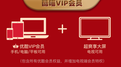 (3)酷喵VIP:不仅涵盖优酷VIP的各项权益,而且还能在电视端CIBN酷喵影视、天猫魔盒以及天猫魔屏上使用。