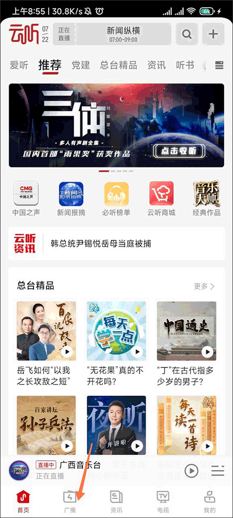 如今,不少小伙伴都热衷于收听本地电台,以此获取身边诸如新闻、天气之类的信息。那么,怎样借助云听收听本地电台呢?今天小编就来教大家具体操作方法。