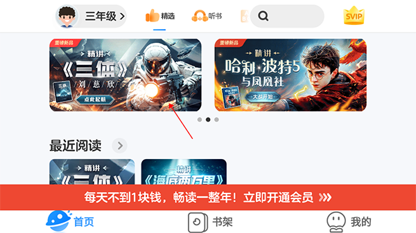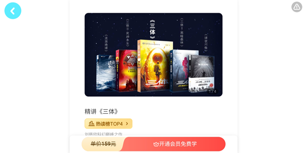 用户使用手机登录后,在首页就能看到三体书籍的推荐栏。
