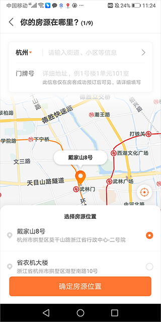 3、接着挑选自己房源的位置信息,上传对应的房源图片,并填写有关房源的文字描述内容。