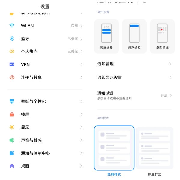 1请按以下步骤操作:首先进入【通知与控制中心】,接着找到其中的【通知显示设置】,将其切换为原生样式,如此设置便于后续操作。
