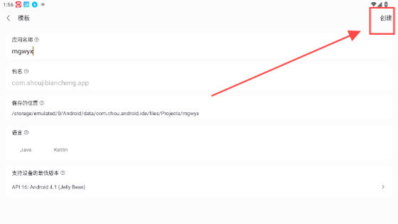 5. 最后点击【创建】,就能在线编写程序代码,开发手机软件。