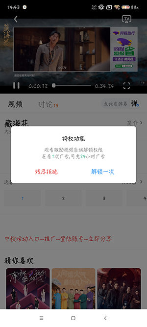 注意:摘星剧场的投屏功能需通过观看广告来解锁,每次观看广告仅能解锁24小时。