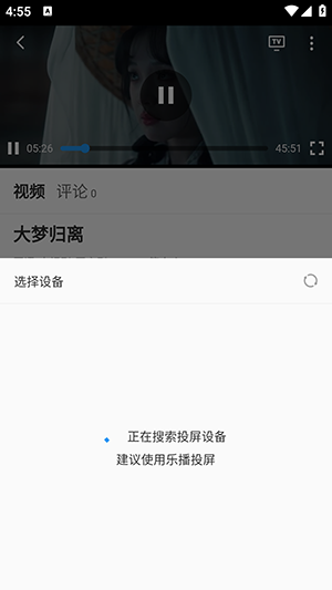 4、轻点右上角的TV图标,软件便会自动搜寻投屏设备,并随即开启投屏操作。