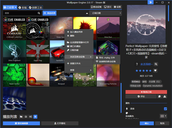 PS:若您无法连接到Android,可右键点击任意壁纸,选择“发送到移动设备”,接着选择导出.mpkg。之后,您能够借助数据线或其他途径,将导出的移动包文件传输至您的移动设备。