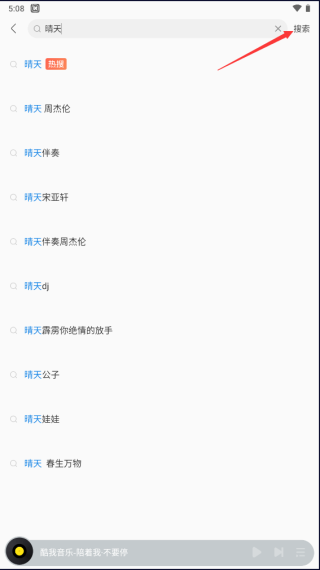 1. 首先在搜索栏中输入你心仪的歌曲名称,随后点击搜索栏最右侧的“搜索”二字。