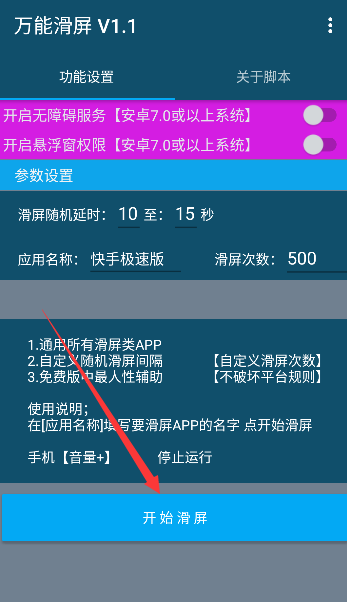 快来点击开启无障碍服务,通过脚本设置让手机屏幕自动滑动!
