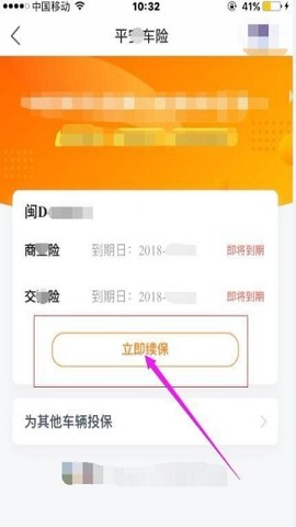 3. 在新打开的页面里,挑选“立即续保”选项。