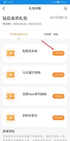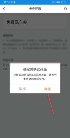 5. 寻觅免费洗车券,而后点击“立即兑换”。