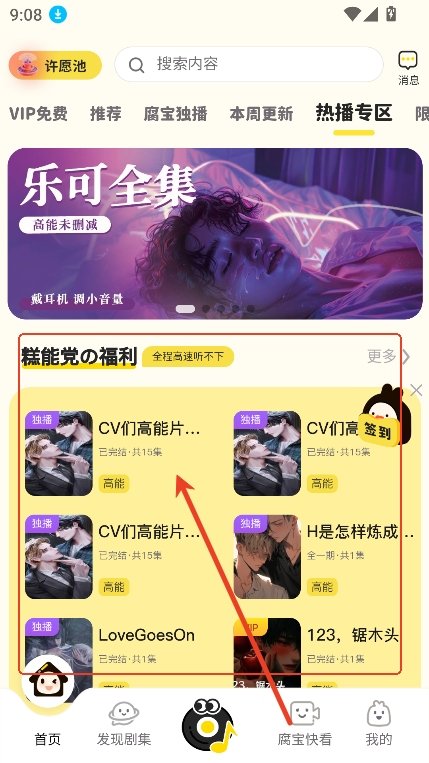 3、每日同步更新剧集,只需一个腐宝FM无需多平台切换,享受一键听剧。