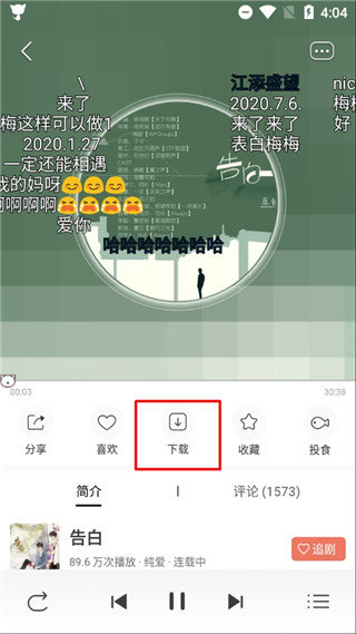 1、首先找到自己喜欢的音频,在收听界面点击图中的“”选项