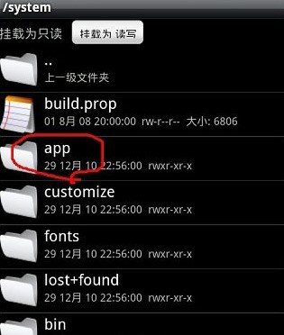 第四步、在这里面就是系统程序了,每个程序有两个文件,apk、odex,可以都删也可以保留apk放到sd卡里以后要了装。