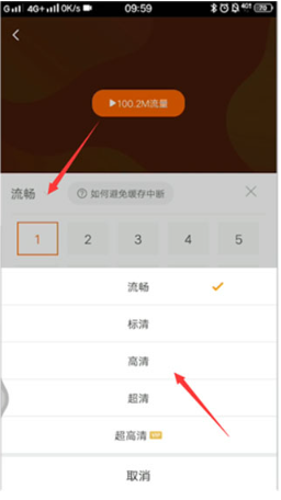 3、轻点流畅旁边的下拉图标,挑选所需的清晰度。