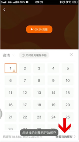 4、挑选所需集数,点击“查看我的缓存”,就能看到相应视频。