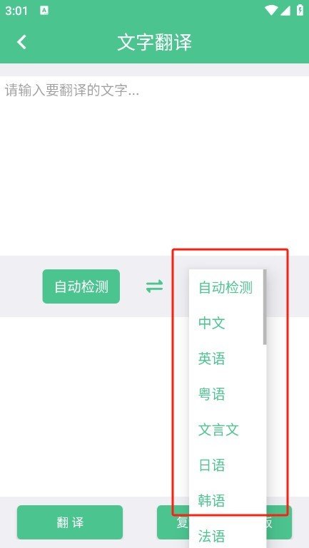 3、输入需要翻译的文字,会自动显示对应语言的翻译结果。