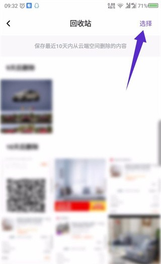 3、最后来到回收站的页面中点击右上角的【选择】-【恢复照片】即可;