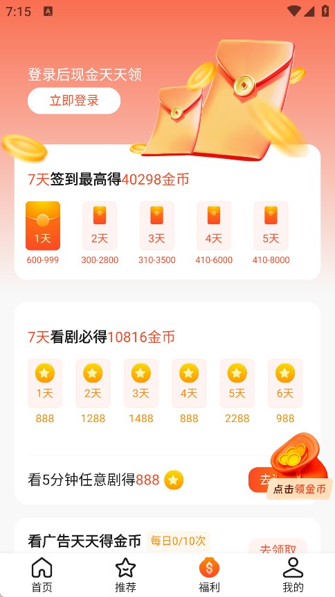 3、福利页面设置了诸多不同任务,用户登录后就能着手完成。