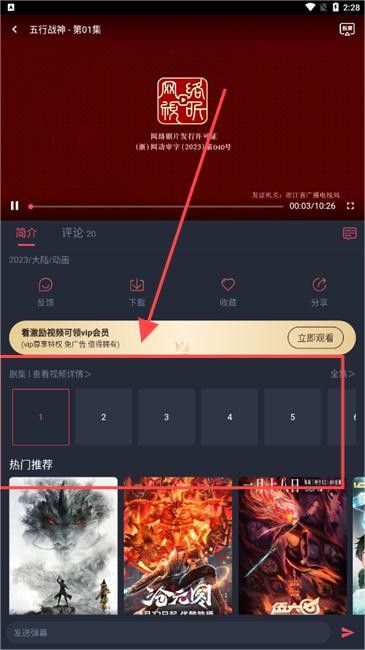 2、然后点击视频中间的领取vip,看完激励视频即可获得vip
