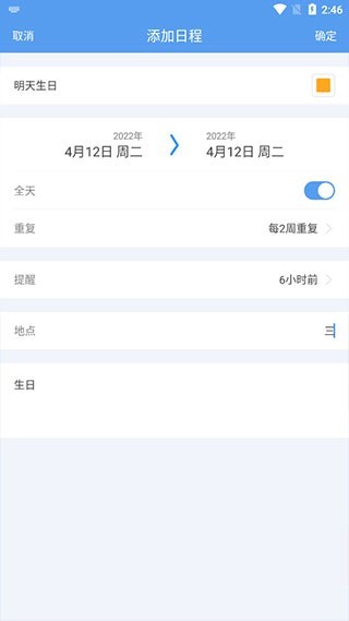 3、用户可自行设置待办事项,体验录入功能,以防遗忘。