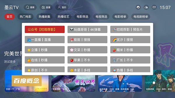 3、轻点屏幕,左侧会弹出电视节目栏,供大家挑选观看。