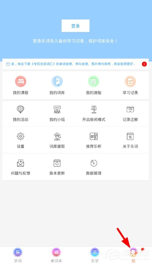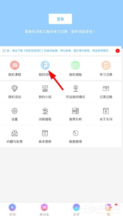 2. 在个人页面里,点击“我的词库”选项,从而进入词库页面。