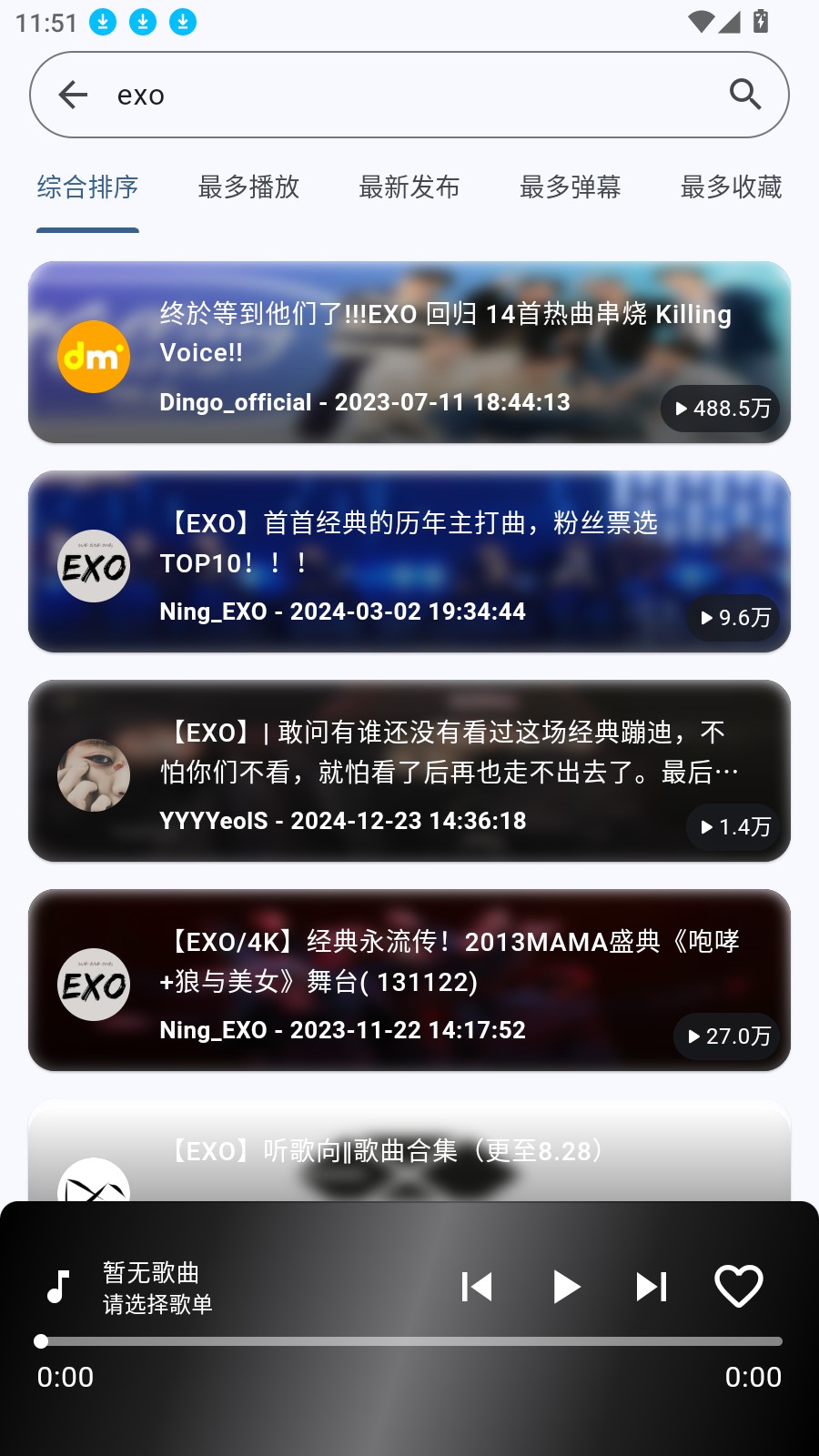 2、可以搜索up主来听歌,会显示详细的音乐信息。