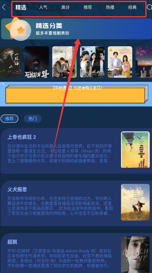 2. 能够依据短剧的分类,查找你想要观看的短剧资源。