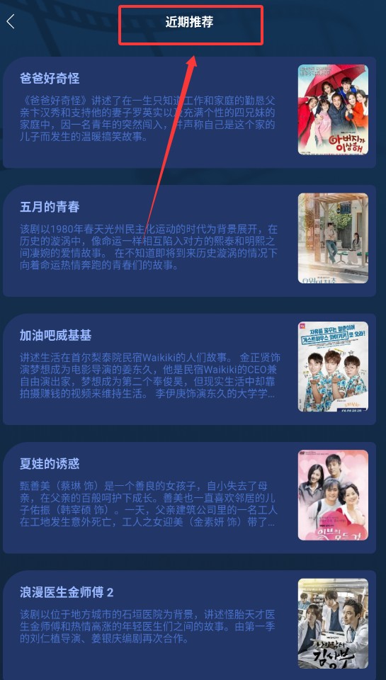 2. 进入近期推荐板块后,依据所给选项挑选影片,点击便可进入。