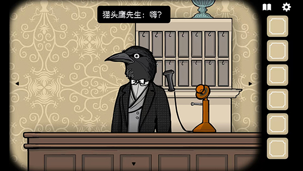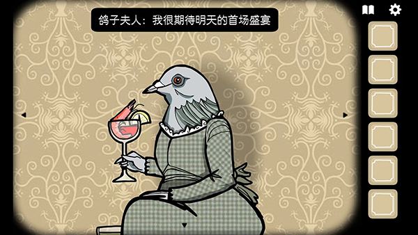 4、点击【箭头】图标来切换界面,依次把鸡尾酒发放给猪先生、鸡女士、鹿先生、兔先生以及鸽女士,不同的人会给出不一样的回复。