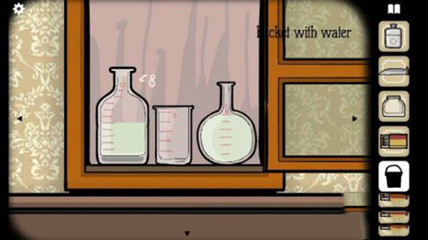 1、第一步,在房间里的煤油灯附近,我们能够获取到钥匙。用这把钥匙打开实验桌上的柜子,就能瞧见三个空置的烧杯。