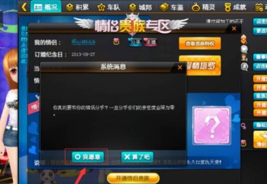 4.然后选择【我愿意】,就可以解除情侣关系了。