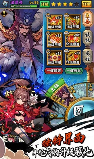 作品将人才辈出的三国时期完美呈现于玩家眼前。在这片战场上,唯有强者方能千古留名。你可以轻松集齐卡牌,通过英雄对比进行抽卡,这种游戏方式能满足有个人收藏偏好的玩家。你还能自由搭配自己的团队,在对战中运用各类兵书与奇谋,持续助力己方势力战胜敌人,完成挑战。