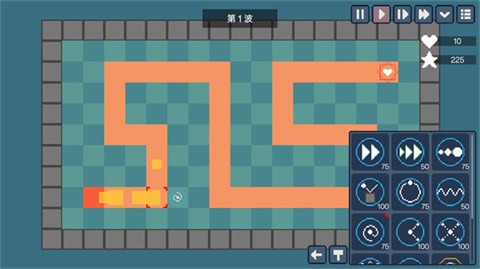 2、从众多关卡中挑选其一,在游戏画面的正上方,会显示波数。玩家需要做的是,每当一波敌人袭来,就将他们全部消灭。