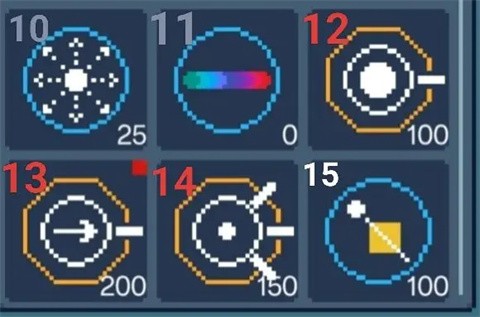 14、第十四项是向三个方向发射子弹,每颗子弹的伤害值为5,子弹撞墙后会反弹,不具备穿透效果。